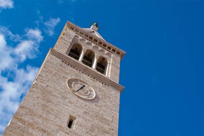 Als Kathedrale, war Sitz des Bistums Novigrad. Hinter dem Hauptaltar ist frühromanische Krypta, die einzige in Istrien und eine der wenigen in Kroatien. Von Museen und Galerien sind hier Museum Lapidarium, Gallerion und die Galerie Rigo, die die Gröβ der Stadt übertreffen, denn eines der Ziele Novigrad ist, Stadt-Museum zu sein. Lapidarium Museum beherbergt sehr wertvolle Sammlung antiker und mittelalterlicher Gegenstände. Das Museum Gallerion im alten Stadtkern umfasst interessante Exponate, die von Anwesenheit dieser Flotte an der Adria zeugen, der auch zahlreiche Kroaten dienten. Zu sehen sind Modelle von Kriegsschiffen, Landkarten, Waffen und Fotografien.