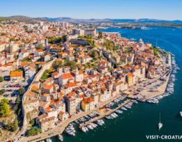 The historic city of Šibenik is picturesquely situated in a deep bay. The spacious bay is connected to the open sea by a channel that is proudly guarded by the 16th-century fortress of St. Nicholas and numerous islets. Šibenik and its surroundings are particularly charming because of the mouth of the Krka river, which flows through Lake Prokljan and eventually merges with the Adriatic Sea right here near Šibenik. In the history of the Croats, Šibenik is extremely important as it is the oldest city they founded upon their arrival on the Adriatic coast. The city was mentioned for the first time in a document of King Petar Krešimir IV in the 11th century, which later led to the city being also called Krešimir's city. In the 15th and 16th centuries, Šibenik was surrounded by walls, but only the fortifications located on the hills above the city have remained until today. The greater part of the walls, which served as protection against Ottoman invasions, was mostly demolished and only the wall that runs from St. Michael’s fortress down towards the coast and ends at the city gate in the quarter Dolac has been preserved.