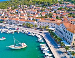 In addition to Dalmatian songs, Vela Luka and its cultural and artistic society nurtures and preserves the old Vela Luka dances " Četiri pasa" and "Tanac", as well as the knight game "Kumpanija", which are often performed in the summer. In the immediate vicinity of Vela Luka is the Neolithic site of Vela Spilja, which is especially worth seeing. Valuable exhibits are kept today in the baroque summer house Kaštel. Do not miss to enjoy a rich table of fresh fish seasoned with homemade olive oil, taste the island's desserts hrstule, pršurate and say cheers with premium wine Pošip. You should also not miss a visit to the nearby island of Ošjak and the pristine white beaches of Proizd.