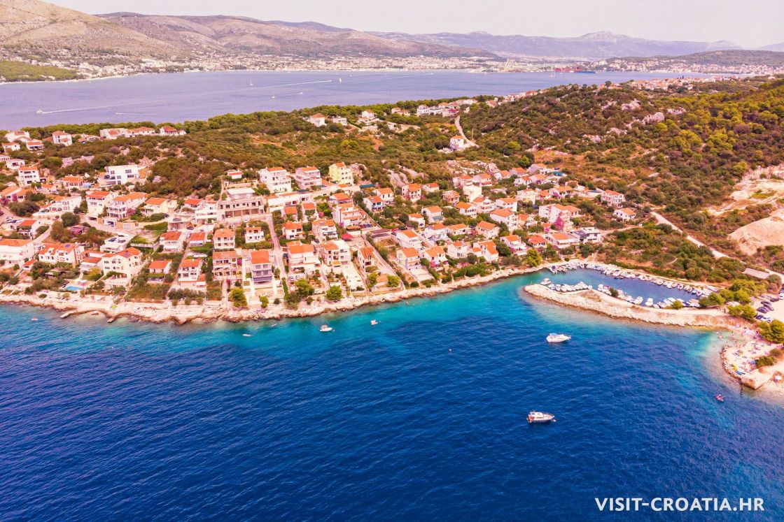 Near the historical UNESCO jewel of Trogir and just across the bridge on the island of Čiovo lies Okrug, which for years has been warmly welcoming its guests in numerous modern apartments, villas and holiday homes. The famous pebble beach Toć is the center of life of this small Dalmatian town. During the day, it is a popular beach destination, while at night it is full of young people looking for fun and entertainment. Those seeking peace will find their place in hidden coves such as Duboka and Široka, whereas lovers of a more active holiday can enjoy cycling, climbing to the top of the island and diving under the expert guidance of diving instructors from the local diving club.