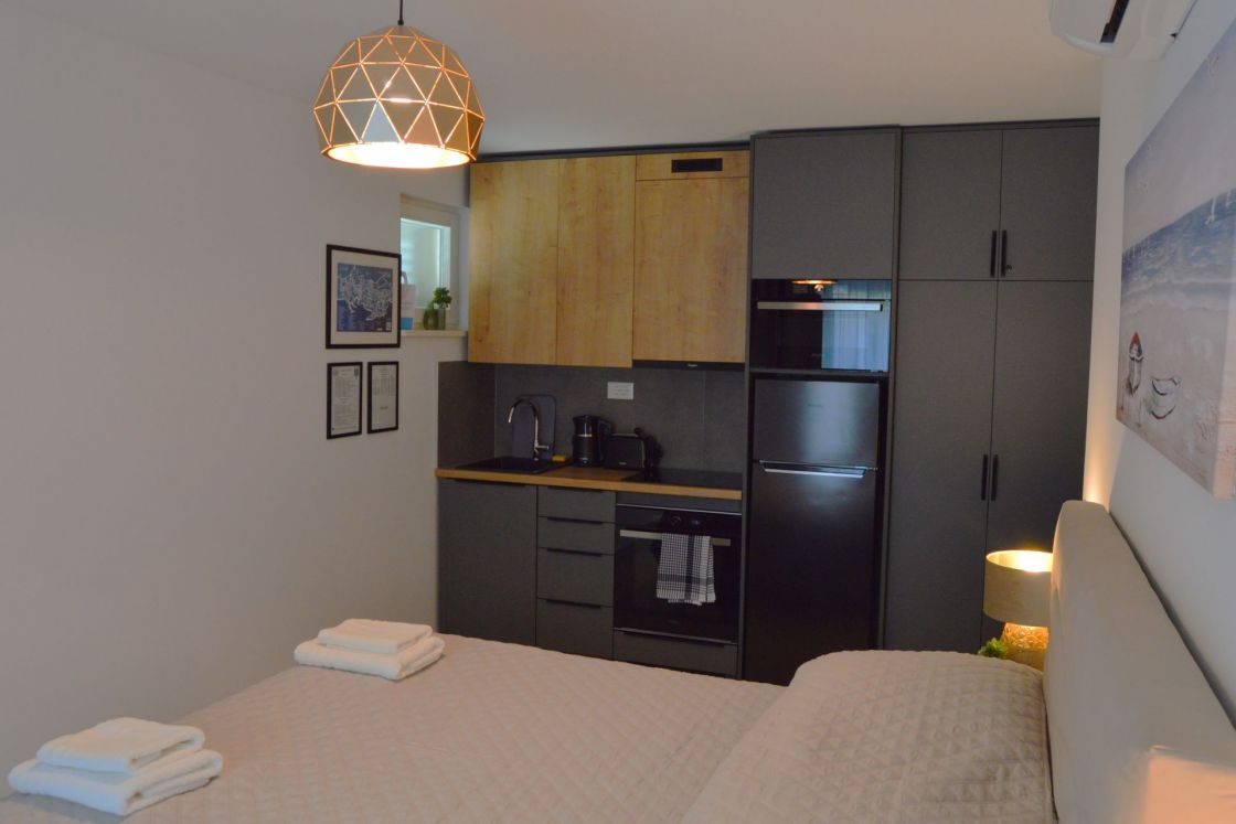 Die Apartments Elements W befinden sich in einem ruhigen Teil von Supetar auf der Insel Brač. Es gibt drei Strände in der Nähe. Sandstrand – Vela Luka (3 Gehminuten) mit allmählichem Einstieg ins Meer, Kieselstrand – Tri Mosta (5 Gehminuten) mit Blick auf das offene Meer und Kieselstrand B...