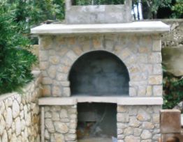 Terrasse Meerblick Küche Backofen Kühlschrank Geschirr und Besteck