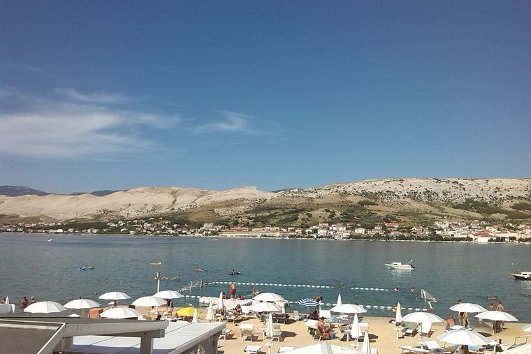 Der größte Sandstrand in unmittelbarer Nähe des alten Stadtzentrums heißt Prosika. In den Lagunen von Pag strecken sich 27 Kilometer von Sand-, Kies- und Steinstränden, von denen Zrće, Janjeće vode, Beritnica, Sveti duh, Sveti Marko, Dubrava, Bošana, Caska, Ručica, Slana, Malin, Veliki Zaton, Bijele Stijene, Veli Bok, Mali Bok und Kotica die bekanntesten sind.