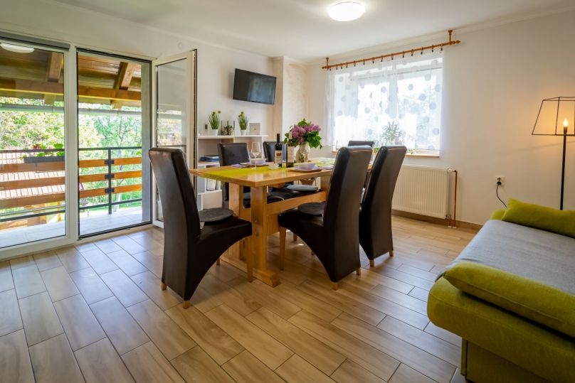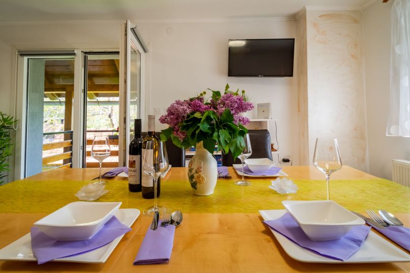 The holiday house "Sleme" *** is located in the municipality of Skrad, in the small town of Sleme Skradsko kbr. 9. The facility can accommodate 5-7 adults. The building consists of two bedrooms, bathroom, kitchen, dining room and living room, corridor, balcony and terrace. Next to the hou...