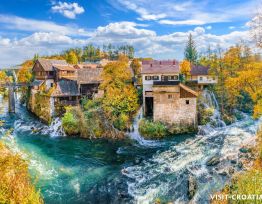 A picturesque watermill village called Rastoke in Karlovac county will enchant you with its fairytale atmosphere. The shimmering Slunjčica, a beautiful and short karst river flows there through numerous small waterfalls, lakes and cascades into the river Korana. Continuing in harmony between man and nature the water mills of Rastoke safeguard the memory of old times. In this dreamy mill settlement you can enjoy a walk over small bridges, listening to the murmur of the water and taste freshly caught trout on one of the village terraces. For its stunning beuty Rastoke was placed under the protection of the State Agency for the Protection of Cultural and Historical Heritage in 1962. Comfortable accommodatin in Rastoke is offered in private villas, apartments, chalets, cottages and holiday houses. Visit this irrestistible mill village and become a part of a beautiful fairy tale.
