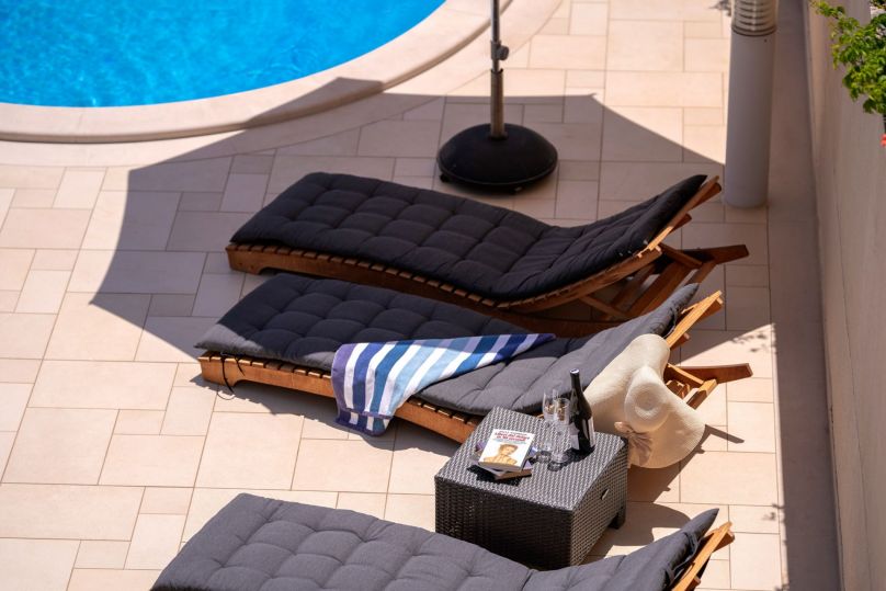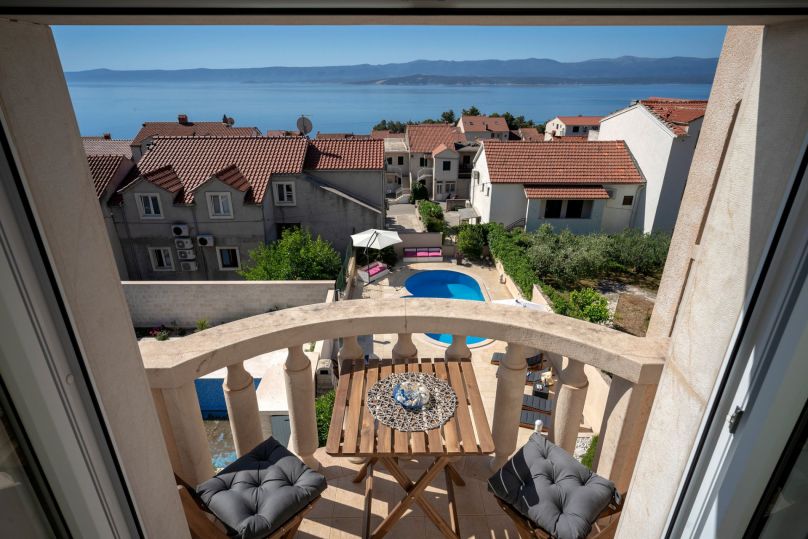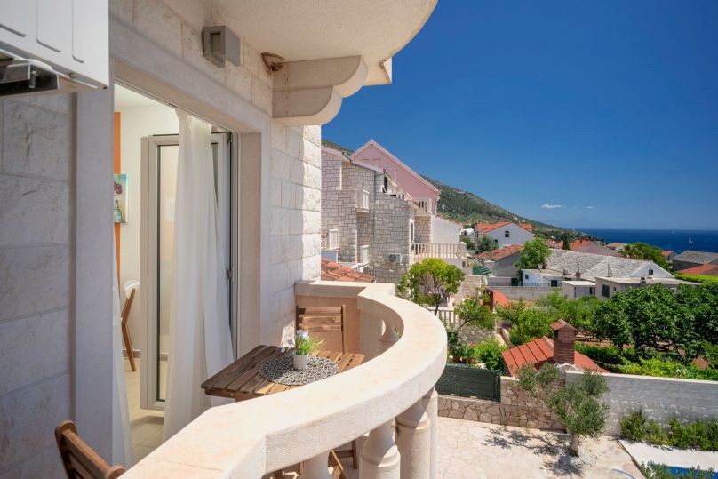Stone house property located less than 3 minutes walk from sea and Bol center, consist of 4 apartments all with 1 bedroom for up to 4 people and all with amazing sea and city balcony/terrace view. In the property there is swimming pool with a lots of outside furnished space and BBQ. Un...