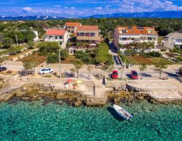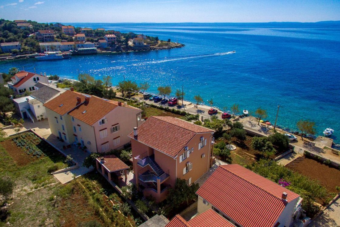 The apartments are located right on the sea with a view of Cres and Lošinj, ideal for a quiet and relaxing holiday without much noise and bustle. The apartments are fully equipped. In front of the house there is a small green oasis with a rich vegetable garden where guests can help themsel...