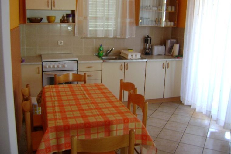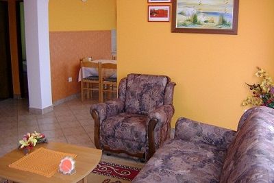 Our apartment is 62 m 2 big. Our house is in the second row from the sea. We have ground level and first floor. The ground floor is used by my family and the first floor is for rent. As you have seen on the picture, the apartment has one room with duble bed and the second room has two si...