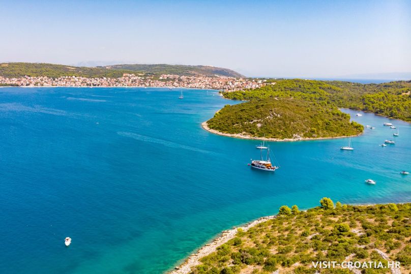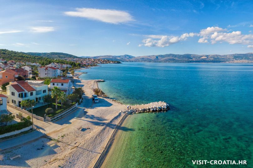 Otok Čiovo je s Trogirom spojen mostom. Velik broj Splićana prepoznao je pristupačnost Čiova, pa mnogi tu imaju svoje kuće za odmor. Tu su brojne lijepe plaže među kojima su najpopularnije Milićevo, Bok, Bušinci i Bijela plaža kod Okruga Gornjeg, plaža Slatine kod istoimenog mjesta, te plaža Kava kod Okruga Donjeg. Čiovo preko uskog kanala ljubomorno promatra ljepotu Trogira, te se trudi nametnuti svoje turističke adute. Za one sklone istraživanju, lijepih pješčanih i šljunčanih plaža u blizini Čiova ima također i na otocima Drvenik Veli i Mali do kojih možete stići brodicom ili trajektnom linijom iz Splita koja staje i u Trogiru. Sjeverno od Trogira nalazi se nekoliko manjih mjesta koja su uglavnom turistički orijentirana, a najveća među njima su Marina, Seget i Vinišće. Osim lijepih plaža među kojima ima onih pješčanih i u hladu borova, tu je i moderno opremljena marina za nautičare.