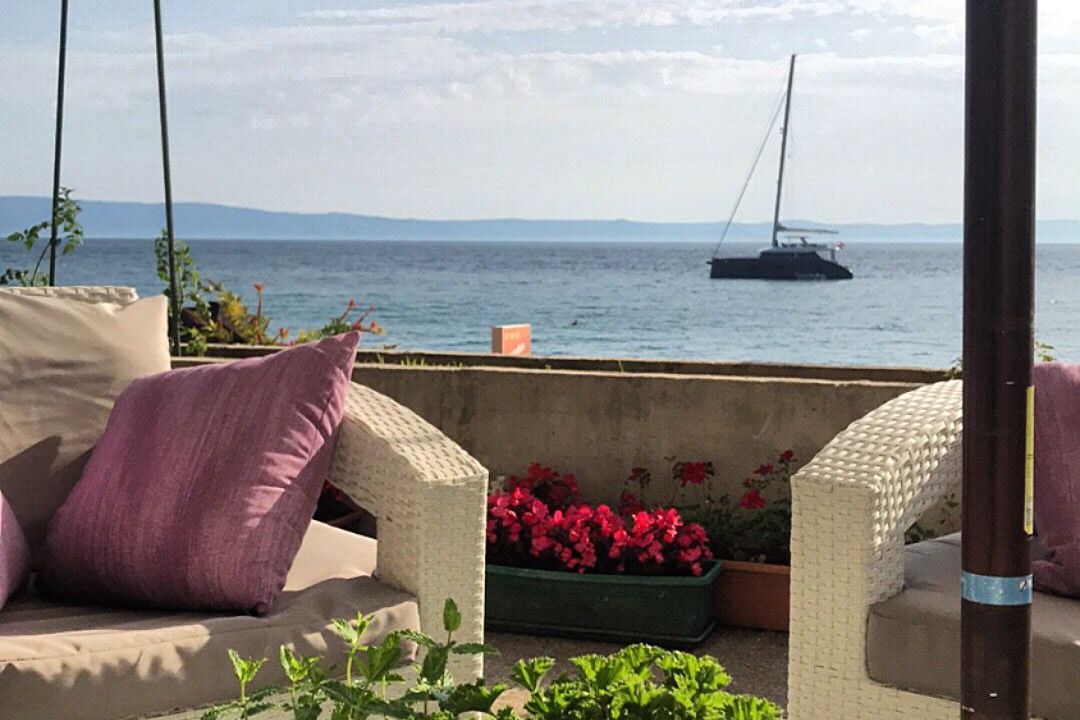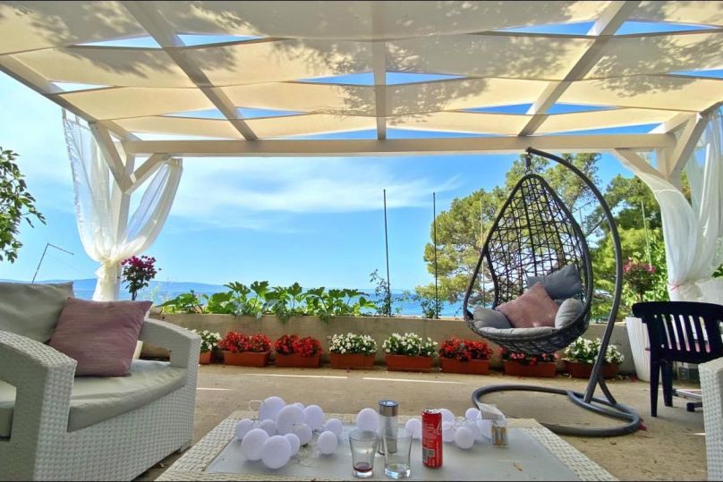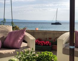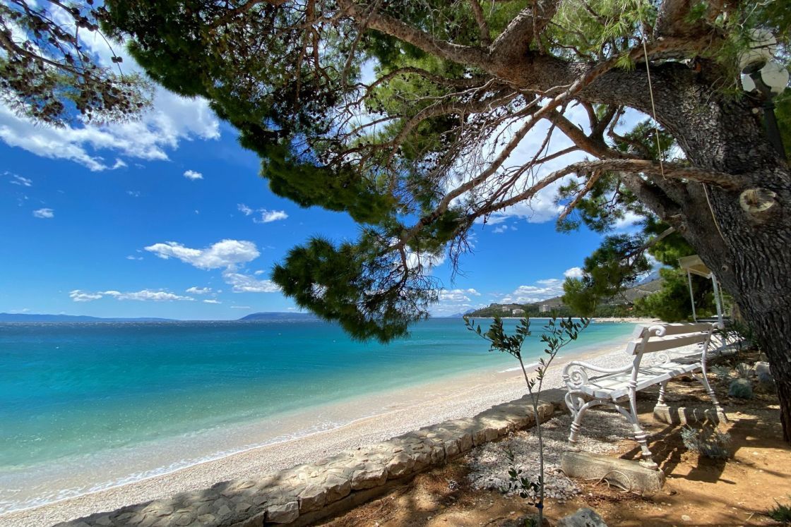 Apartmani Daša Tučepi FANTASTICNA lokacija na samoj plazi prvi red uz more, okruženi smo zelenilom i prirodnom hladovinom, maslina i smokava te mirisima Dalmacije. Okućnica i vrtovi su puni lavande, smilja, kadulje, mente, naranča i mandarina. Prekrasni studio apartmani (2+1)moderno uređen...
