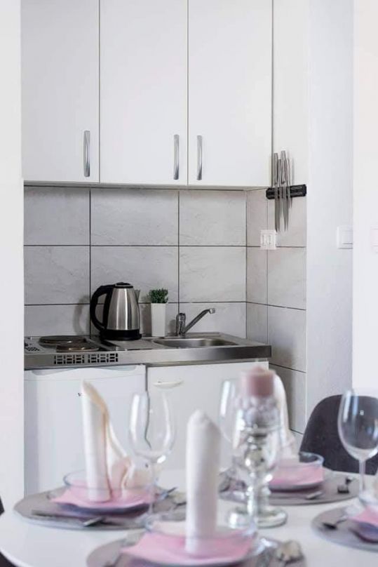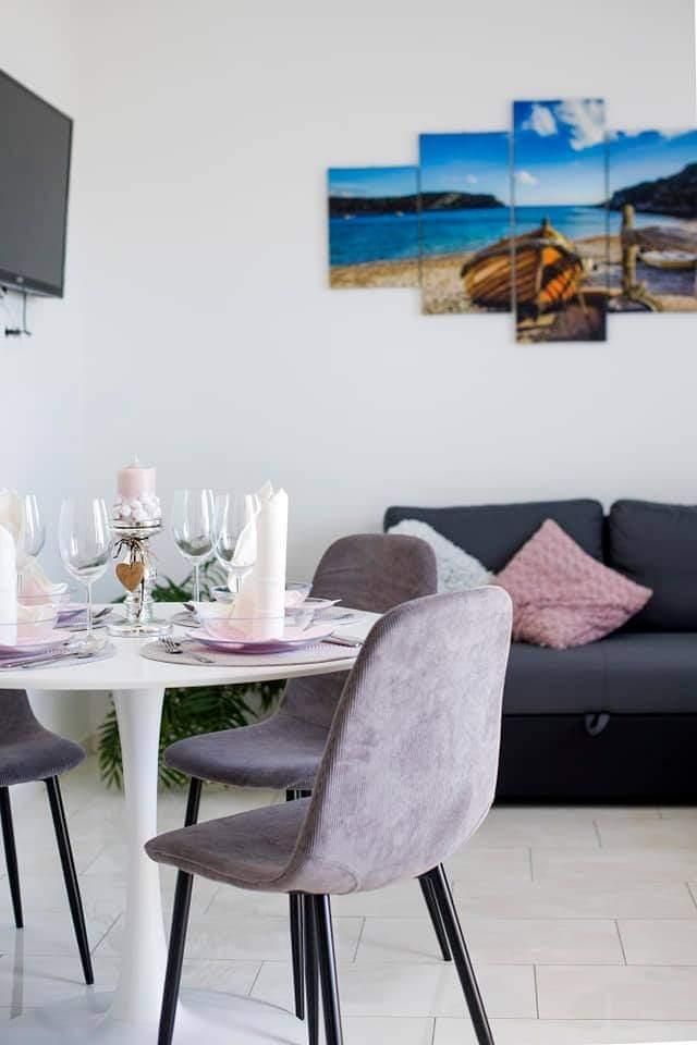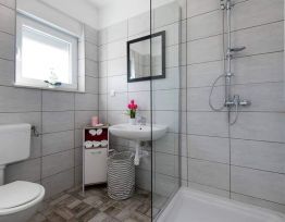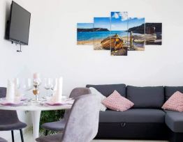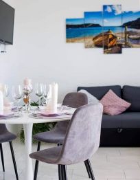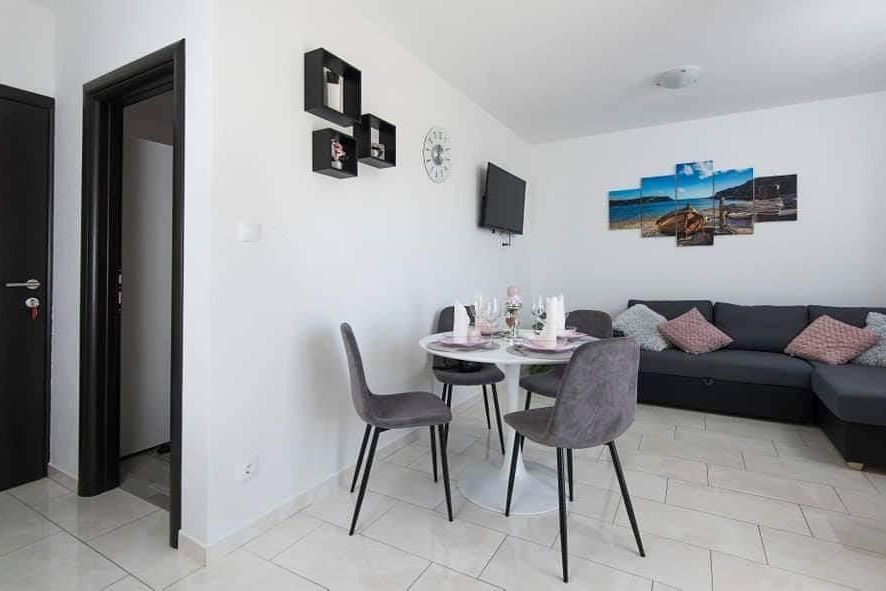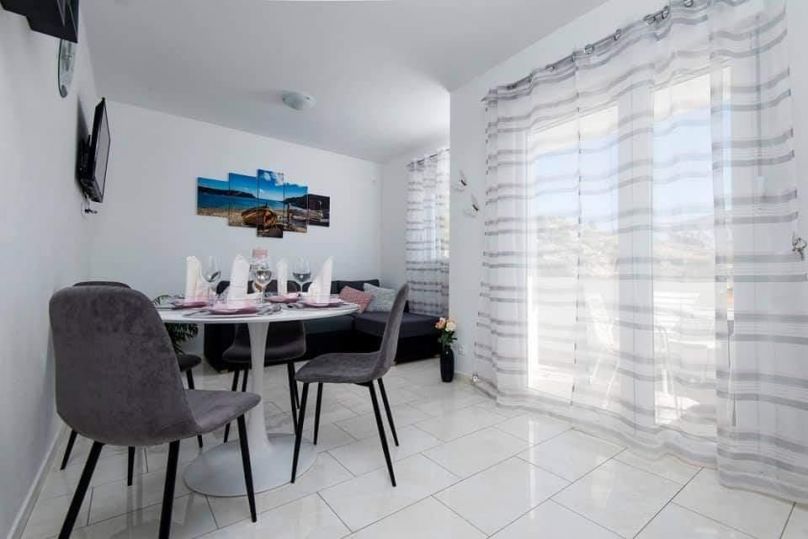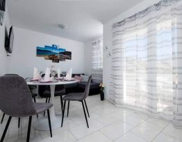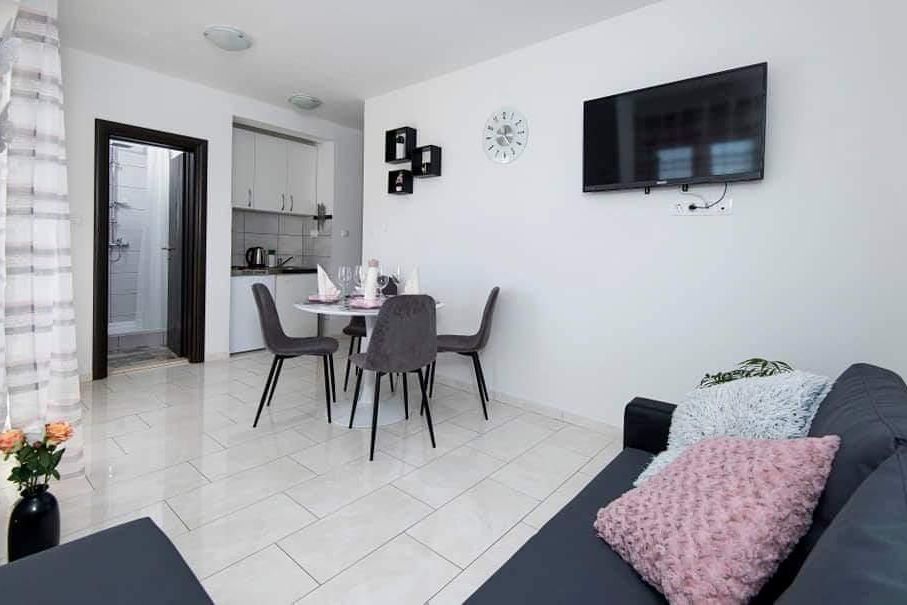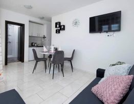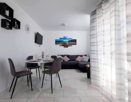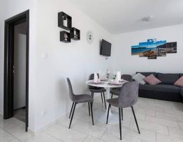 Potpuno novouređeni, klimatizirani apartmani sa pogledom na more u mirnom turističkom mjestu. Blizina raznih uslužnih sadržaja, trgovina, barova, restorana. Na pješčanoj plaži, uz čisto more, nude se i razni sportsko-rekreativni sadržaji. Naši gosti također imaju popuste na određene restor...