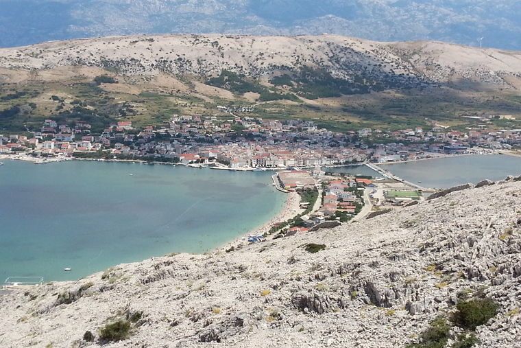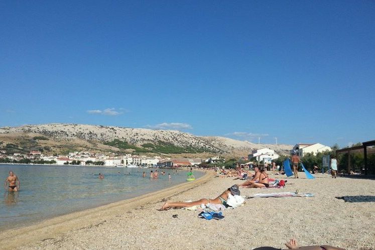 Najveća pješčana plaža u neposrednoj blizini stare gradske jezgre je Prosika, a u Paškom zaljevu pruža se 27 km pješčanih, šljunačnih i kamenih plaža od kojih su najpoznatije i najljepše Zrće, Janjeće vode, Beritnica, Sveti duh, Sveti Marko, Dubrava, Bošana, Caska, Ručica, Slana, Malin, Veliki zaton, Bijele stijene, Veli bok, Mali bok i Kotica.