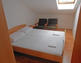 54 m2 - Potkrovlje - Broj soba: 2, Broj kupaonica: 1, Broj osoba na glavnim ležajevima: 4, Broj osoba na pomoćnim ležajevima: 2