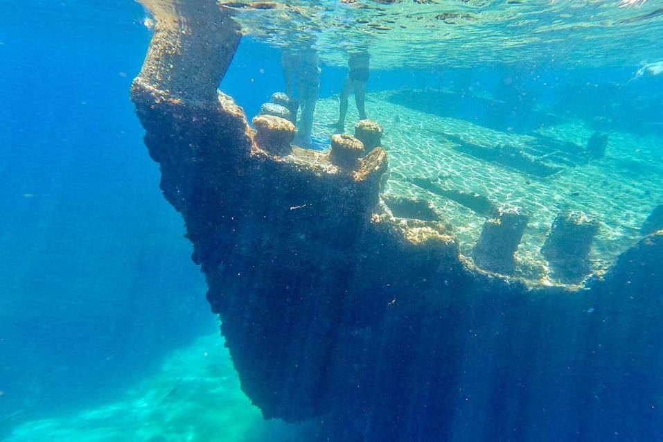 We will spend the day exploring the island of Dugi otok ( Long Island ) and surrounding islets with a new 8m long speedboat for small group 10-12 persons with a lot's of stops for swimming and snorkeling. You will swim and snorkel in the crystal clear turquoise sea on the most beautiful beaches on our way. Experience snorkelling on an 18th century sunken shipwreck and swimming into the majestic Golubinka sea cave and Dragon’s Eye natural phenomenon formed by the wear of the limestone rock in which it is located. Relax and enjoy at the most picturesque sandy beach in Croatia - Sakarun beach. The exotic sandy beach of Sakarun with its turquoise blue color will simply leave you breathless. Not far from Sakarun is the picturesque lighthouse Veli Rat with dazzling white beaches and crystal clear sea. Dugi Otok’s charming features can hardly be described in just a few words, so we can only invite you to join us on this unique sea experience and feel the fairytale beauty of this natural oasis.