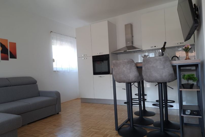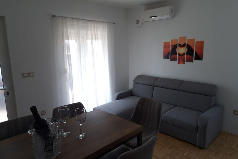 Apartmani D nalaze se na 100-150 m udaljeni od plaže Karabana (3-5 minuta šetnjom), a od plaže Sulterova vala 400 m. Zračna luka Zadar udaljena je 12 km (kraćim putem 5km). Apartmani D gostima nude besplatni parking, besplatni Wi-Fi, terasu/balkon, pogled na vrt, prostor za sjedenje, TV ra...
