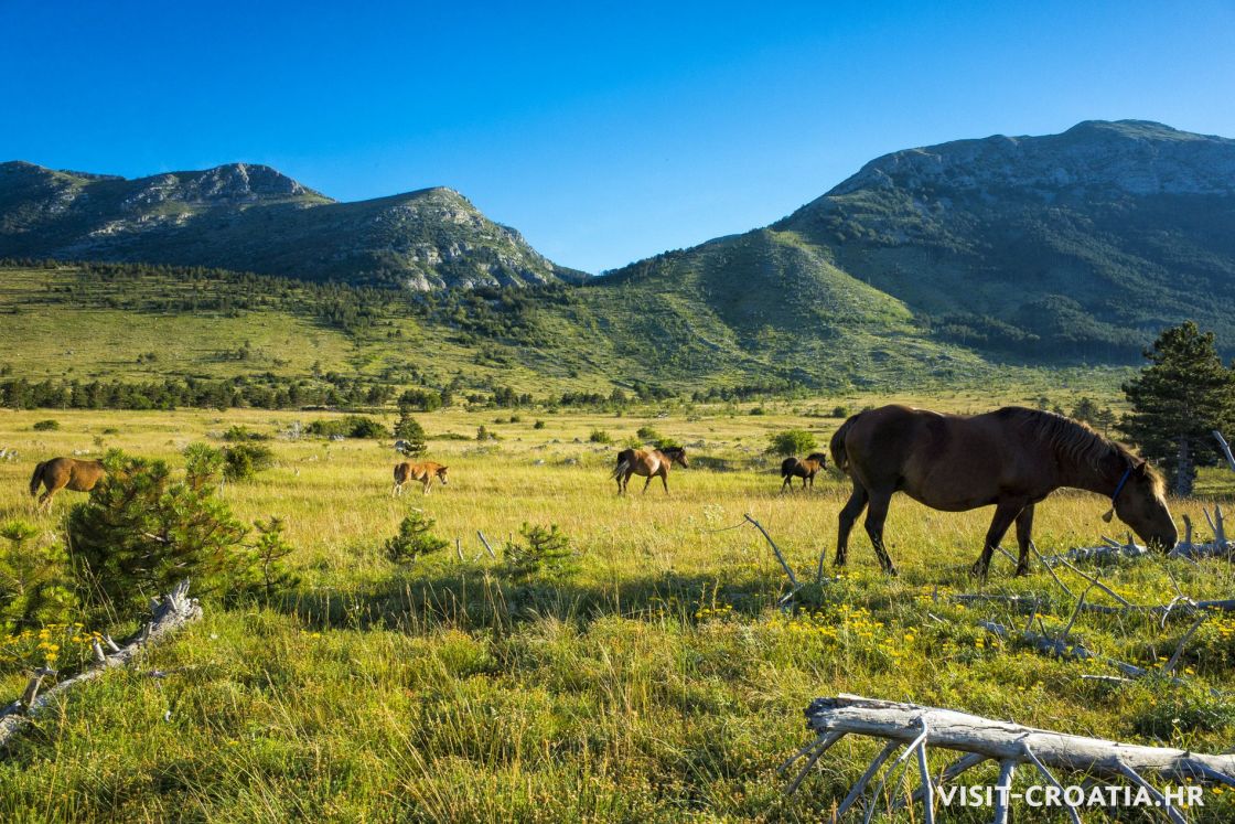 The magnificent Velebit mountain range, together with the two national parks Paklenica and Northern Velebit, is a UNESCO World Biosphere Reserve and protected as a nature park. In addition to the beautiful national parks, the Velebit Nature Park features many sites of natural beauty such as the forest vegetation reserve Štirovača, the geomorphological nature monument Cerovačka špilja, the paleontological nature monument Velnačka glavica and many other natural attractions within it. Bay Zavratnica, which was declared a significant landscape, belongs also to the nature park and is definitely worth a visit. The mountain’s coastal slopes are rocky with a barren landscape, sporadically dotted with only small areas of greenery, while the inland slopes with their lush dark green forests are much more gentle and scenic.