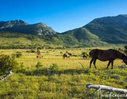 There are four educational trails in the Velebit Nature Park. The Zavratnica educational trail leads to one of the most beautiful bays of the Adriatic coast, Zavratnica Bay. The trail “Kudin most” is named after the oldest preserved bridge crossing over the river Krupa, which was built in the dry-stone wall technique. It runs along beautiful waterfalls and fairy-tale travertine cascades in the river Krupa. The educational trail from Starigrad Senjski to Donja Klada passes along roads that vividly display the building tradition of this area, while the fourth trail called Theresiana is part of an Austro-Hungarian road from the 18th century. Worth visiting within the park are also the Cerovac caves, which are rich in archaeological finds. The Velebit Nature Park provides all nature lovers with safe shelter in numerous mountain lodges: Ravni Dabar, Prpa, Sijaset, Oltari, Careva kuća, Apatišan, Mrkvište, Miroslav Hirtz, Kugina kuća, Kata, Vila Velebit, Sveti Josip. If you are looking for pristine and somewhat wild nature, do not miss a visit to the magnificent Velebit Nature Park.