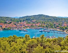 The picturesque village Kukljica is located in the southeast of the island of Ugljan and overlooks the island of Pašman. Due to its proximity to the Ždrelac Passage, Kukljica is often referred to as the gate to the National Park Telašćica and National Park Kornati. The old village center is characterized by typical Dalmatian architecture, i.e. by traditional stone houses that are built next to each other thereby creating small squares. The center of the village features the parish Church of St. Paul and a tower bell built in 1741. The votive church of Our Lady of the Snow is situated in the Ždrelac Passage between the islands Ugljan and Pašman. According to legend, snow had been falling in the summer right at this place almost 500 years ago. A unique tourist attraction in Kukljica is the annual Feast of Our Lady of the Snow on August 5th, during which hundreds of boats participate in a traditional procession to the Church of Our Lady of the Snow.