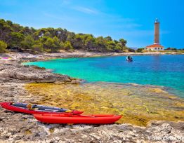 Veli Rat is located in the northern part of Dugi Otok in the bay of Čuna. The remains of buildings from Roman times bear witness to an ancient settlement in this area. The village features the beautiful Church of St. Anthony and a modern marina, while along the coast there are houses and apartments providing comfortable and quality accommodation. The main attraction of Veli Rat is the lighthouse "Lanterna Punta Bjanka". The idyllic beauty of the lighthouse and the white beaches that surround it are widely known. In the summer it is teeming with curious tourists and romantic couples who are waiting for a spectacular sunset in this very place. Locals say the sunset from this place is the most beautiful in the world. In the courtyard of the lighthouse is the chapel of St. Nicholas in which weddings are organized. The nearby sandy beach Sakarun is one of the most beautiful beaches in the Adriatic Sea. Due to its exceptional beauty, this part of Dugi Otok has been declared a significant Croatian landscape. The best way of exploring the bay Brbišćica and discovering the secret of Zmajevo Oko (Dragon's Eye) and the sea cave Golubinka is by boat.