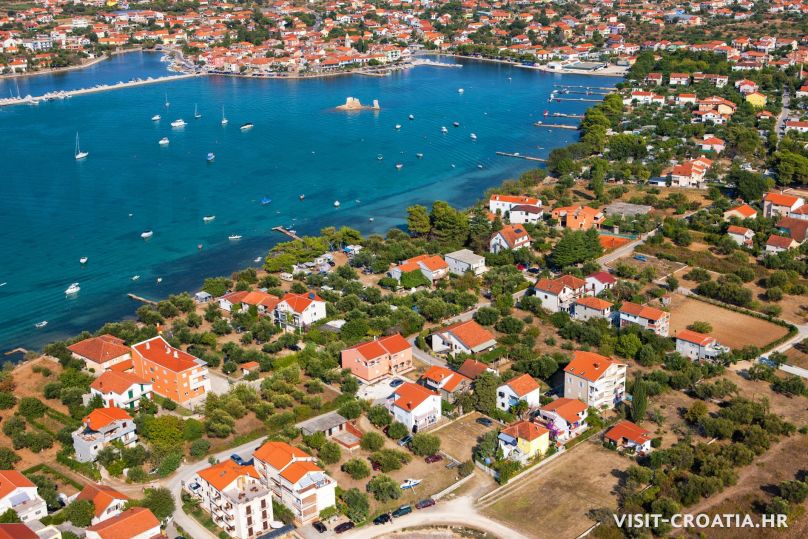 In the spacious bay of Zlatna Luka lies the small town Sukošan. Numerous remains from antiquity, such as the ruins of a rustic villa on Barbir, the Illyrian fortress on Vrčevo and the old Roman aqueduct (Vilinski zid) bear testimony to life in this area. Particularly charming are the remains of the former summer house of the Zadar Archdiocese, which was built on an artificially created island in the middle of the bay in the 15th century. If you look towards the remains of the summer house in the evening, you will be enchanted by the play of shadows with the colors of the setting sun that are reflected on the calm surface of the sea. This tourist resort offers quality accommodation in luxury villas with swimming pools, modern apartments and holiday homes. Sukošan is an ideal destination for discovering and experiencing the beauties of the Croatian coast, the playful appearance of the archipelago of Zadar and Kornati, and the magnificent nature in the surrounding national parks.