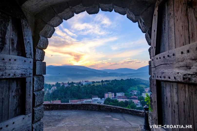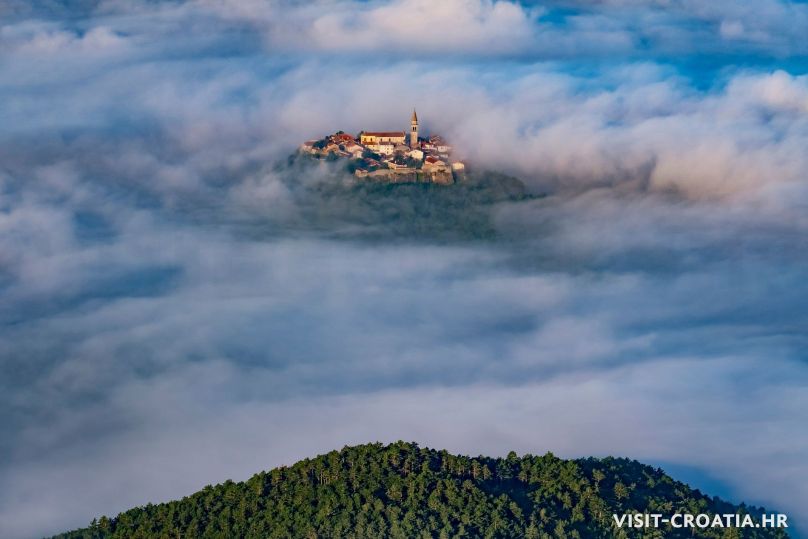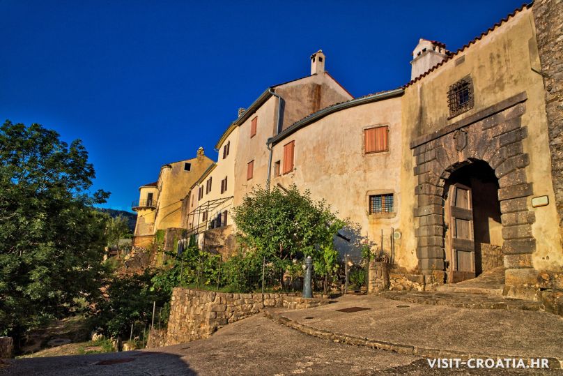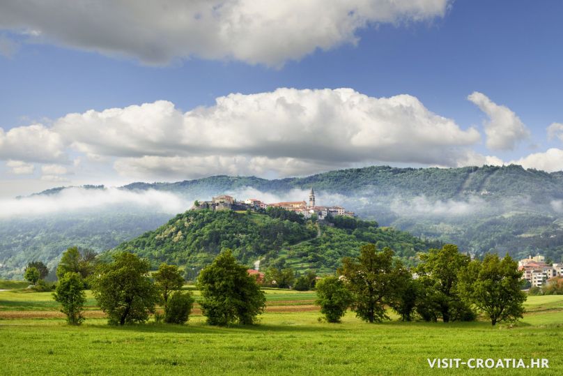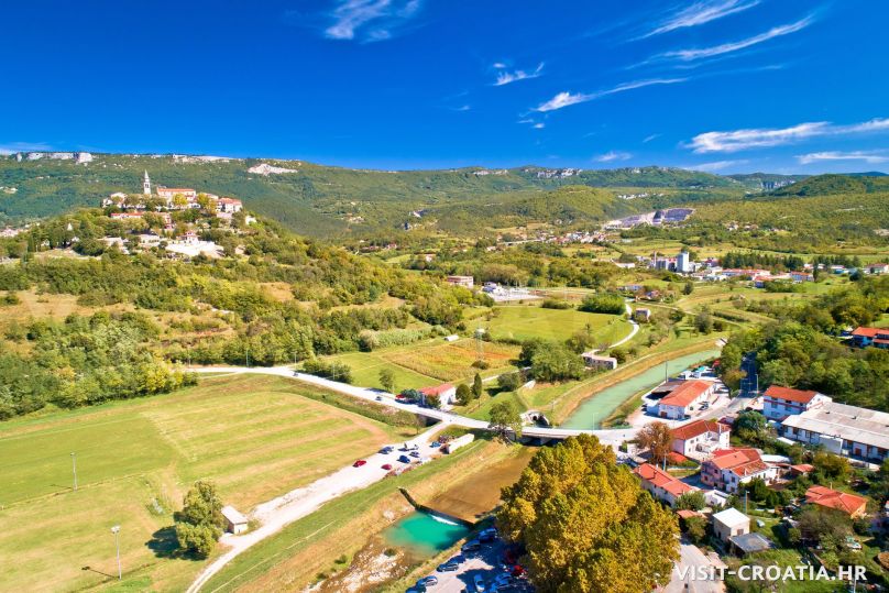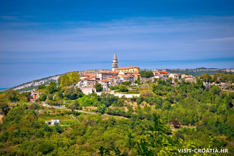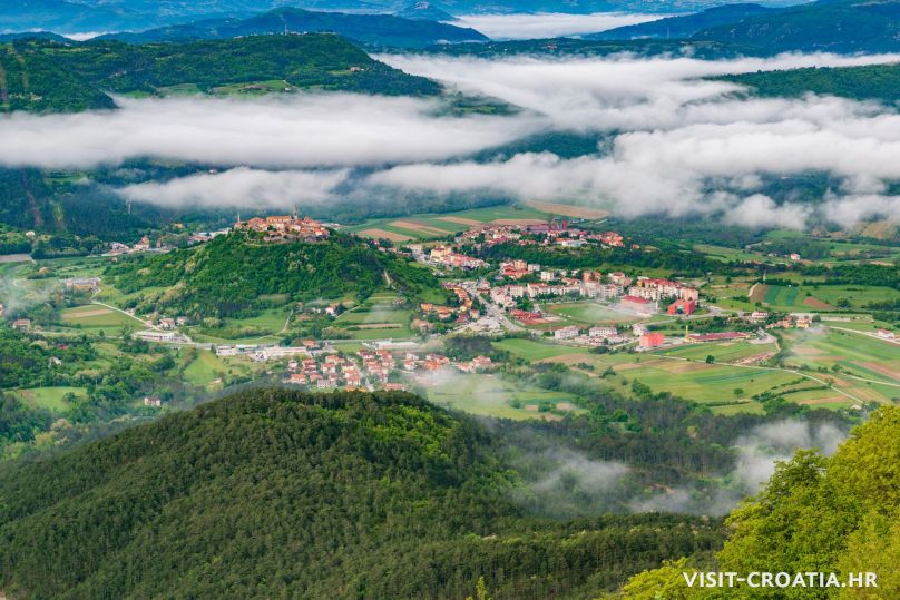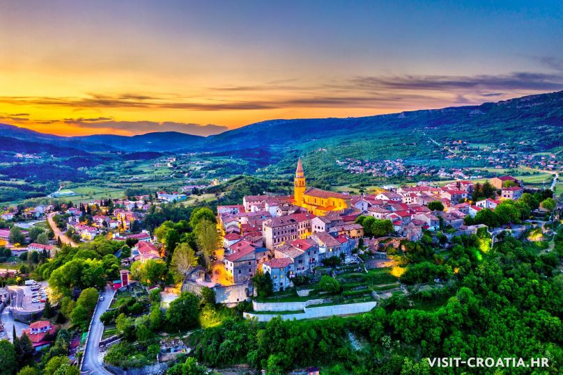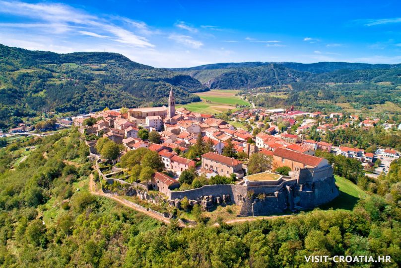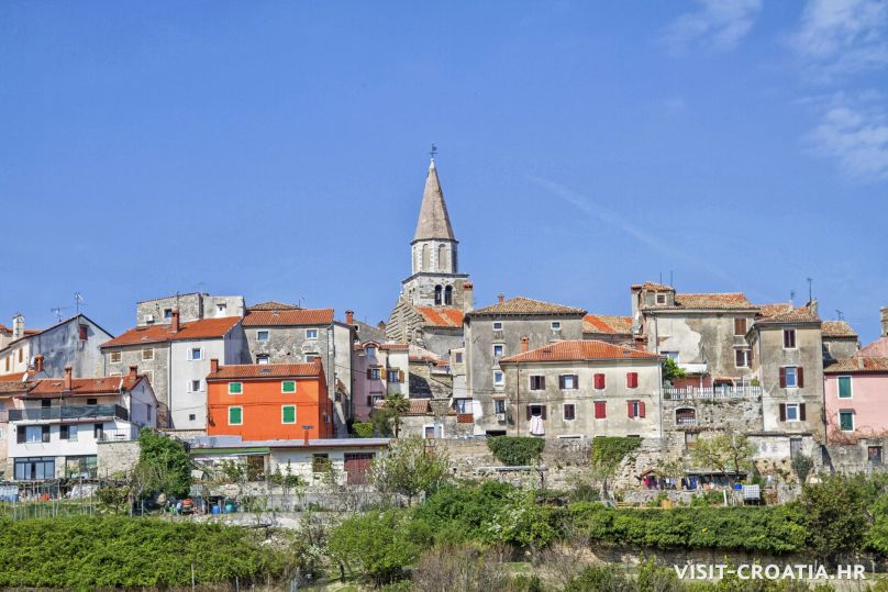 Buzet, il vecchio borgo medieval sorge sulla valle della Mirna. Al centro si trova una delle più belle fontane dell’Istria e la parocchiale dell’Assunta (Crkva Uznesenja Marijina). Pinguente è anche conosciuta come “città dei tartufi”.