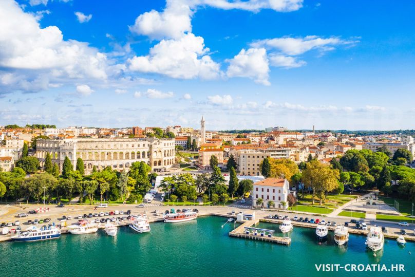 Pula is the largest town on the Istrian peninsula. The town of Pula is famous for its rich heritage from the past as well as for its intensive efforts to develop further and fullfil its main branch of services, tourism. A part of Pula's offering to tourists is of course dependent on its cultural-historical monuments from which most date back to the time of ancient Rome. Apart from the Roman amphitheatre, there is the Arch of Sergii from the 1st century B.C., the gate of Hercules and The Twin Gates, the town's walls, Augustus' temple, the small Roman theatre, and the Forum which today is one of the main gathering places for citizens and tourists alike. Pula offers its visitors a rich programme of entertainment, beginning with concerts, performances and exhibitions within its cultural summer festival, but also out of the tourist season, of which most are held in its unrivalled arena. In Pula itself there are a few beautifully equipped tourist complexes, which aside from the quality of their facilities offer visitors everything they need: nicely-kept beaches with all facilities, cafes, restaurants, shops, and a whole array of sport and entertainment facilities. Pula as a centre of tourism, cultivates its rich gastronomy, with traditional Istrian dishes which are offered in a wide fan of fish and seafood, meat dishes and local pastry, and all of this seasoned with fine olive oils or the highly esteemed ingredient typical of and exclusive to this region – truffles. The tradition in wine is also very old, so that on a table groaning with food one usually can find very sophisticated wines.