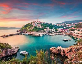 On top of a rock that emerges from the blue sea lies ancient Vrbnik on the eastern coast of island Krk. The harmonious stone houses are densely arranged around the imposing bell tower that dominates the village. There is no doubt that Vrbnik can be considered one of the most beautiful and charming Croatian settlements. It is a place of rich history, but also the heart of the Croatian cultural heritage, thanks to the Glagolitic tradition, which has been preserved here for centuries. Namely, the Glagolitic alphabet is the oldest Croatian alphabet, and most of the preserved documents written in this alphabet originate from the island of Krk. In the romantic atmosphere of Vrbnik, you can find accommodation in picturesque stone houses and apartments. The beautiful beaches of Zgribnica, Pod kovač and Potovošće are ideal for enjoying the sun during long summer afternoons. The hidden coves in the vicinity of Vrbnik, which are accessible only by boat, offer peace and solitude.