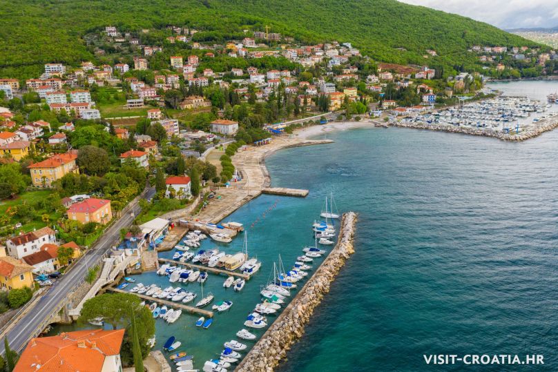 Opatija riviera is set out in an almost unbroken line along the narrow coastal belt under the Učka. Lovran, Ika, Ičići, Mošćenička Draga, Volosko, Matulji, Kastav, Mošćenice, Medveja, Park prirode Učka, Lovranska Draga, Veprinac. The line begins in Matulji, which is located on the coast near Rijeka and which is called "the gate to Kvarner", given that from the 19th century tourists from Vienna would be brought there by train. Volosko is a small fishing village around 1.5 km away from Opatija's walkway towards Rijeka. Because of favourable winds it is a popular destination for windsurferes. Until Ičići you can also come with the walkway from Opatija towards Lovran. This is also a place of elite tourism where there are, apart from excellent marinas, a large number of villas and holiday homes, which because of their architecture demand attention. It also has a large beautiful beach, equipped with every facility. Apart from hotel and private accomodation, there is also an auto-camp. For a peaceful family holiday there is Ika, and one of the most beautiful and oldest places in the riviera is Lovran. There is mention of it even in the 7th century, and it got its name from the Bay leaf trees that grow here. Lovran has preserved its old town centre with its central square, Romanesque bell tower, baroque houses and buildings that date back to the 13th century. Here a large number of villas and holiday homes were built, which today entice you with their attractiveness. Around 2 km from Lovran can be found the small tourist resort of Medveja with its auto-camp and beautiful shingle beach, where you can enjoy beach service services, and Mošćenička Draga has as many as seven shingle beaches, to which people come from far afield.