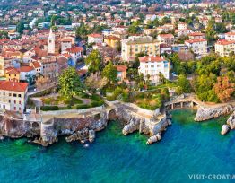 Today, Lovran is one of the most visited tourist destinations in Croatia, where guests can find accommodation to the highest standards in apartments, villas and holiday homes by the sea. Well-kept beaches and sunbathing areas line the Lungomare promenade. The romantic terraces of many bars and restaurants along the coast offer refreshment and gastronomic delicacies such as Kvarner shrimp, homemade cheeses, asparagus specialties, all accompanied by premium Istrian wines. Fans of active holidays can enjoy cycling, various water sports, volleyball and football or discover the beauties of the Učka Nature Park, the National Parks Brijuni, Risnjak and Plitvice.