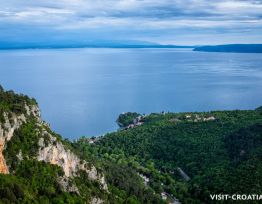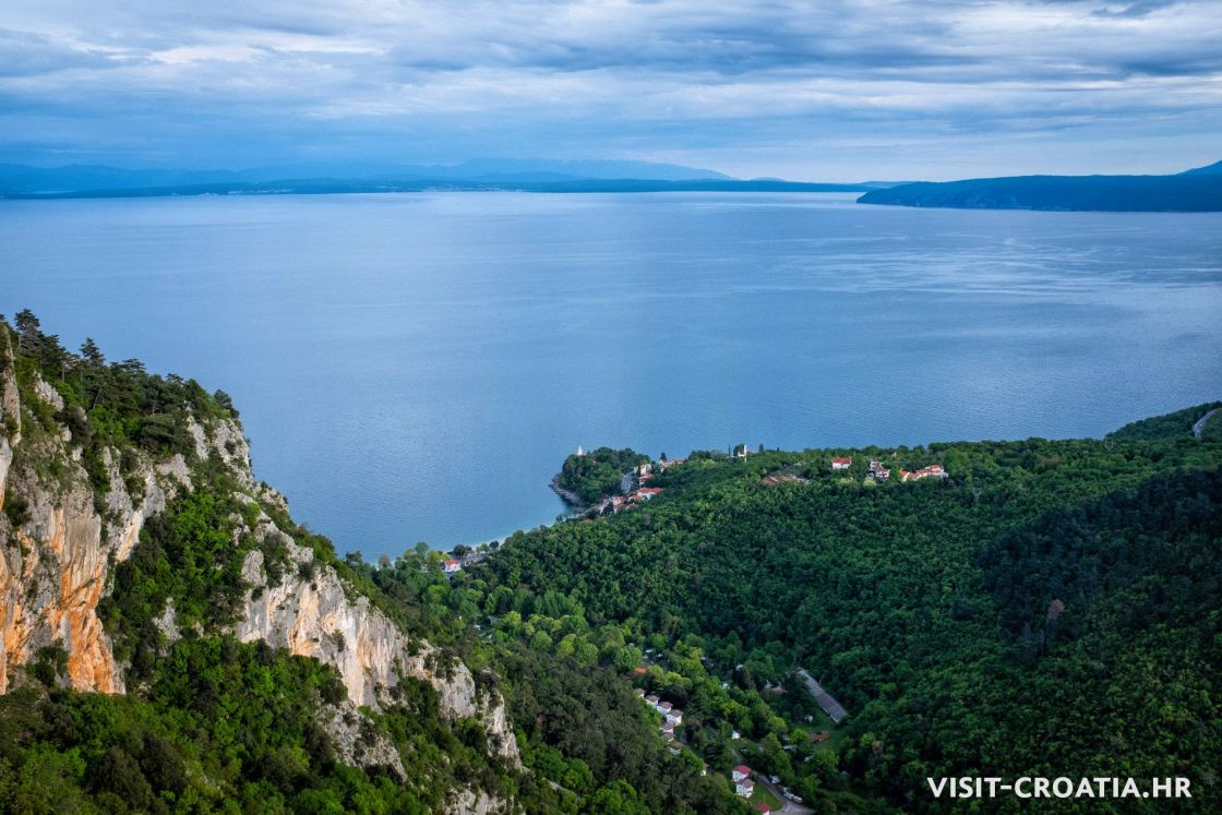 Within the magical Učka Nature Park and on a high mountain ridge lies the charming village Lovranska Draga. Due to its elevated position, Lovranska Draga provides spectacular and magnificent panoramic views of the blue sea and the beautiful Kvarner archipelago. The view on the other side is marked by the impressive green slopes of Učka and its highest peak. The locals use the fertile mountain slopes, which are irrigated by the stream Potok, to cultivate vines, fruits and vegetables. If you visit this quaint place, make a stop at a local tavern or small family farm, where you can enjoy regional culinary delicacies. Charming promenades lead to the sea and the beautiful beaches of Lovran and Medveja. Mountain lovers can enjoy hiking and mountaineering on well-maintained trails within the Učka Nature Park, of which the educational trail Slap is particularly beautiful. It leads from Lovranska Draga through chestnut plantations and dense oak forests to the most beautiful waterfall of mount Učka.
