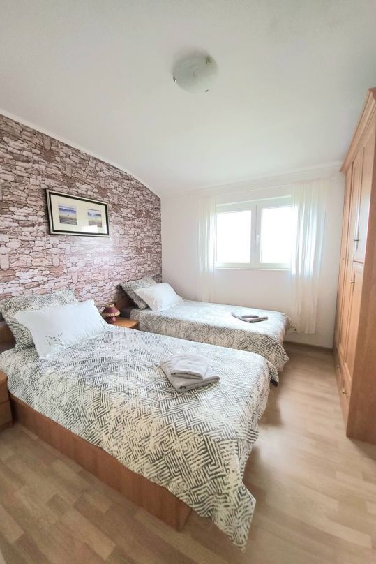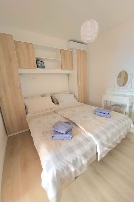 La struttura si trova in una villa bifamiliare con ingresso indipendente. Si compone di due camere da letto, soggiorno, bagno, cucina, disimpegno e terrazzo coperto con vista sul mare e sulla baia. L'appartamento è completamente attrezzato con aria condizionata, lavatrice e lavastoviglie,...