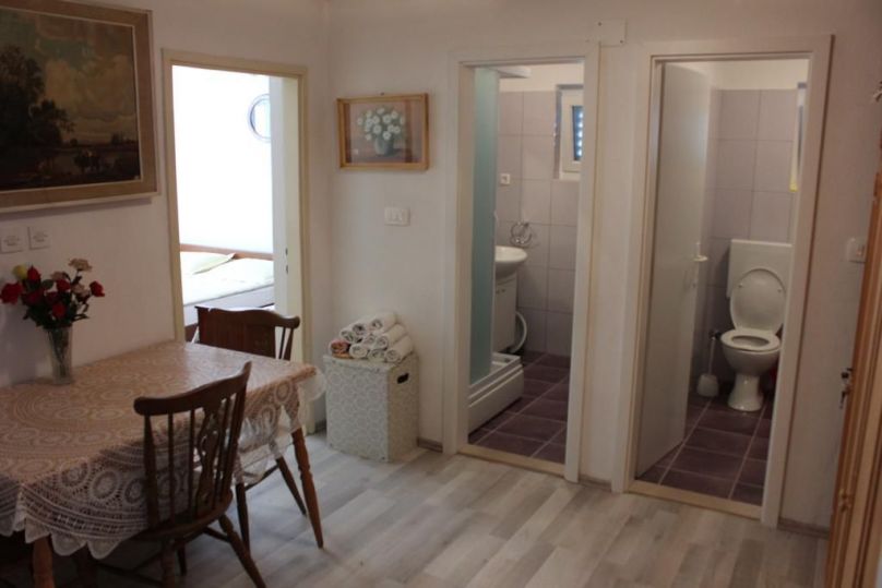The apartment is situated in a private house in a quiet and green area - in Supetar. The apartment (size 80m2) is on the ground floor which is suitable for children and elderly. And terrace of approx. 40 m2 with a beautiful place for barbecue. The apartment is located in quiet area a gr...