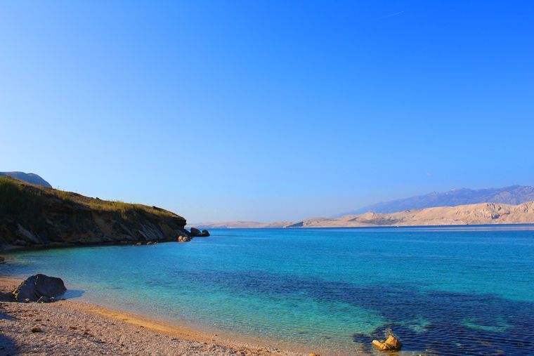 La più grande spiaggia in prossimità del centro storico è Prosika, ed il Golfo di Pag dispone di 27 km di spiagge di sabbia, ghiaia e pietra, tra cui le più famose e le più belle sono Zrće, Janjeće vode, Beritnica, Sveti duh, Sveti Marko, Dubrava, Bošana, Caska, Ručica, Slana, Malin, Veliki zaton, Bijele stijene, Veli bok, Mali bok e Kotica.
