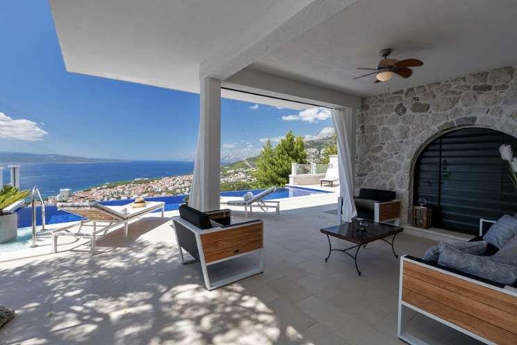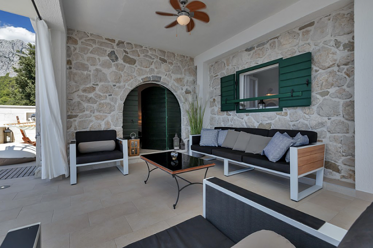 Completely renovated in May 2013, this Dalmatian-style holiday home with a beautiful garden terrace is located in a fantastically quiet location. Enjoy impressive views of the city of Makarska and the islands of Brac and Hvar from the foot of the Biokovo Mountains, amidst a magnificent kar...