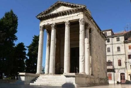 Per farvi un 'idea di come fosse Pola 2000 anni fa, per prima cosa visitate l'Arena, poi proseguite per la via Istarska; andando verso il centro, incontrerete la Porta Gemina, i resti del piccolo teatro romano, la Porta Erculea, l'Arco di Trionfo dei Sergi, il mosaico „Il castigo di Dirce“, ed il Tempio d'Augusto nel Foro romano. Pola un tempo, aveva ben 12 porte, 7 marine e 5 di terraferma. La porta Erculea, il monumento romano più antico della città, si trova tra due torri a pianta circolare. Sull'attico superiore dell'arco sono appena visibili la testa e la clava d'Ercole. Già ingresso del teatro romano, oggi è la porta del Museo archeologico d'Istria. Nel I sec. Pola aveva ben due teatri. Quello grande, con una capienza di 4000 spettatori, per le sue dimensioni si trovava aldilà delle mura. Di esso ci sono rimasti solo alcuni blocchi di pietra: fu demolito nel medioevo per construire nuovi eifici. Il piccolo teatro accoglieva 2000 spettatori e visi entrava attraverso la Porta Gemina. In epoca romana, gli archi di trionfo erano eretti in onore degli iperatori. L'Arco di Trionfo dei Sergi, invece, fu eretto in onore dei Sergi, cittadini „comuni“ distintisi nell'amministrazione pubblica. Per la sua bellezza ha sempre ispirato artisti di tuuto il mondo, tra i quali ricordiamo il grande Michelangelo. Il Tempio d'Augusto è il principale testimone dello splendore del foro romano d'un tempo. Consacrato alla dea Roma ed all'imperatore Augusto, fu construito tra il II sec.a.C. e l'anno 14 d.C. Alto 17 e largo 6m, con le sue 6 colone, è uno degli edifici antichi meglio conservati della città. Oggi ospita una mostra d'antiche sculture di pietra e bronzi. Il Museo archeologico ospita gran parte dei reperti archeologici ritrovati sul territorio istriano. Il suo patrimonio è suddiviso in tre sezioni: preistorica, antica e medievale. Tra collane d'ambra gialla dell'età del bronzo, un antico recipiente di cristallo di rocca realizzato in un solo pezzo ed un piccolo scrigno bizantino d'avorio della fine del I sec. Pola vanta gran numero di chiese che testimoniano della sua lunga tradizione cristiana. La Catedrale di Pola, consacrata all'Assunta, fu edificata nel VI sec. là dove pare sorgesse un tempio romano e, poi, una basilica paleocristiana. La splendida chiesa medievale di S. Francesco fu construita in stile romanico-gotico tra il XIII sec. Il cortile interno, chiuso su tre lati dal convento e sull quarto dalla chiesa, ospita un lapidario. La chiesa della Madonna del Mare fatta construire dalla marina militare austroungarica nel XIX sec. in stile neoromanico-bizantino, è dedicata ai marinai caduti ed alle navi affondate. La chiesa fu inaugurata da un Francesco Giuseppe I insiddisfatto delle ingenti spese pubbliche necessarie per l'edificazione.