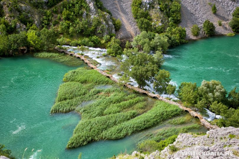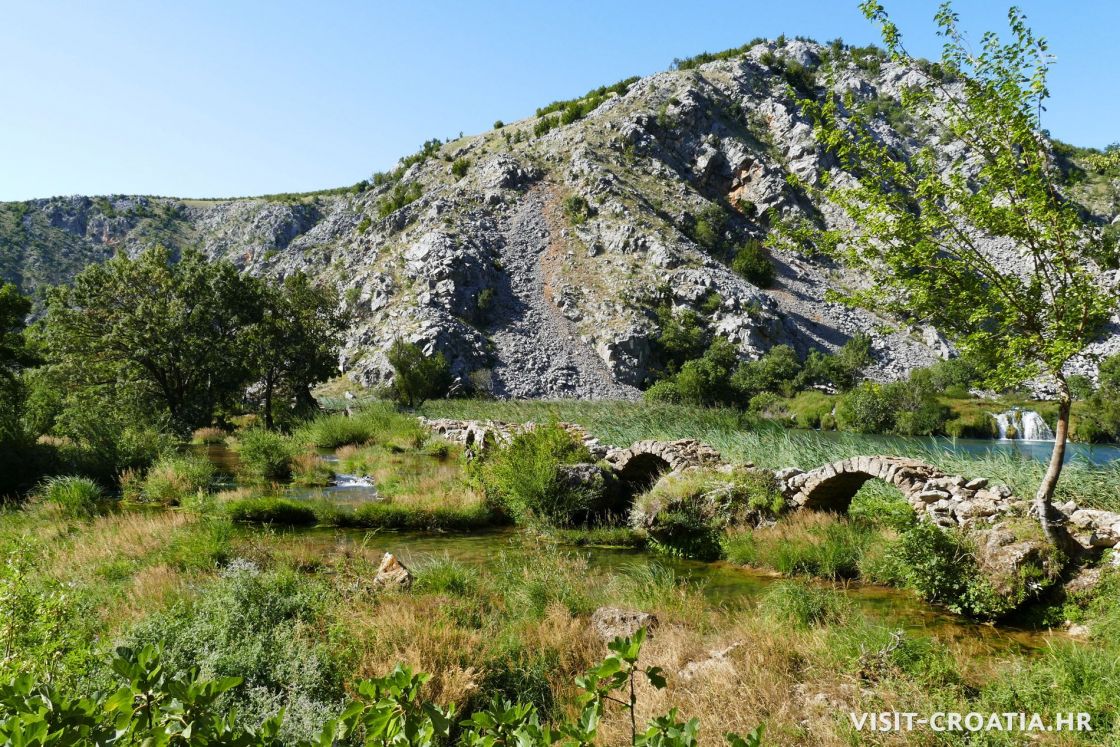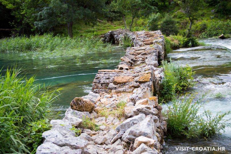 In its fairytale beauty, the river Krupa hides the secret of the bridge of Kuda. The bridge was made of carved tufa in the dry stone technique at the turn of the 19th century. It is one of the oldest crossings over the river, and according to legend it was built by the young man Kuda who was deeply in love. The legend of love and perseverance says that one day Kuda saw a girl named Manda on the other side of the river and immediately fell in love with her. The girl could not cross the river by jumping from stone to stone like Kuda, so he decided to build a bridge for his beloved so that she could reach him. The educational trail from Golubić to Kuda's bridge offers magical views of the blue-green and turquoise color of the river Krupa and its tufa barrier called Deveterac. The barrier is named after nine tufa cascades that end in a high waterfall over which the Kuda bridge leads. This protected cultural monument is 109 meters long and has an average width of 1.5 m. It consists of 12 arches with two water flow paths. Today, Kuda bridge is a popular destination that leaves every visitor breathless. If you find yourself in the hinterland of Zadar, take the road from Obrovac to the village of Golubić where you will see the signpost for Kuda's bridge and discover this gem in the magical landscape of the river Krupa.