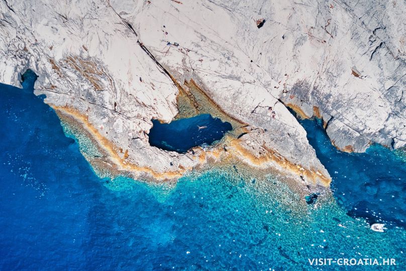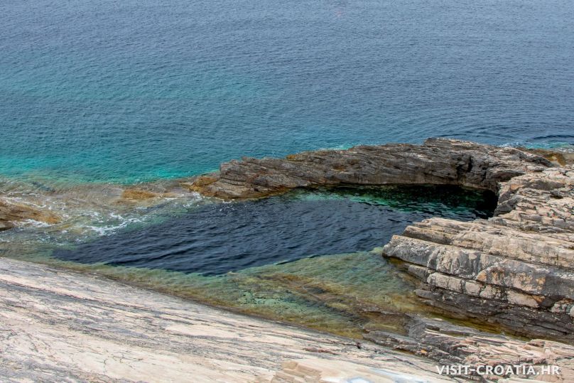 In the bay of Brbišćica on the southwestern side of Dugi otok is a natural phenomenon called Zmajevo Oko (Dragon's Eye). It was formed by the wear of the limestone rock in which it is located. Experienced swimmers and divers with enough courage can dare and dive through the underwater corridor that separates Zmajevo Oko from the sea. The whole bay of Brbišćica is an interesting geomorphological location because of traces dating to the prehistoric time that were discovered in the immediate vicinity of the bay. Namely, a dinosaur fossil was found on the steep slopes, so the bay area has been declared a protected natural landscape. The interesting sea cave Golubinka is another natural attraction that is located in the bay Brbišćica near Zmajevo Oko.